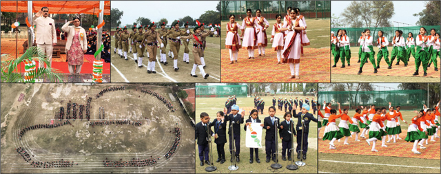 The 77th Republic Day and the 150th anniversary of the national song ‘Vande Mataram’ were celebrated at Blooming Buds School, a renowned educational institution in Moga city, under the leadership of Group Chairman Dr. Sanjeev Kumar Saini and Chairperson Mrs. Kamal Saini. A function was organized by the students and the entire staff to celebrate Republic Day. In this event, BBS Group Chairman Dr. Sanjeev Kumar Saini and Chairperson Mrs. Kamal Saini participated as chief guests. The ceremony began with Chairman Dr. Sanjeev Kumar Saini and Chairperson Mrs. Kamal Saini hoisting the tricolor and the school flag respectively. Along with this, the national anthem was performed by the school choir. Students holding tricolor flags in their hands performed a march past, which was led by the school captains, the bagpiper band, and the NCC contingent, and they saluted the national flag. During the function, Group Chairman Dr. Sanjeev Kumar Saini and Chairperson Mrs. Kamal Saini jointly congratulated everyone on Republic Day. Further increasing the knowledge of the students, Chairperson Mrs. Kamal Saini said that this year this Republic Day has been celebrated under the theme ‘Mantra of Independence, Vande Mataram – Mantra of Prosperity, Self-Reliant India’. She said that just as the song ‘Vande Mataram’ had infused enthusiasm in the freedom fighters, similarly if India wants to become a prosperous country, it needs to achieve self-reliance in every field and India is continuously moving forward with this thinking. On this occasion, Chairman Dr. Sanjeev Kumar Saini also congratulated all the people of India on the 77th Republic Day and the 150th anniversary of the national song ‘Vande Mataram’. He told the students that this national song ‘Vande Mataram’ was written by Bankim Chandra Chattopadhyay in 1870. This song is included in the novel ‘Anandamath’ written by him, which was published in 1882. It was first sung by Gurudev Rabindranath Tagore in 1896 at the Congress session in Calcutta. On 24 January 1950, the Constituent Assembly of India officially adopted it as the National Song. School Principal Dr. Hamiliya Rani shared information about the history of this day and while addressing the gathering, she explained that a constitution means the rules established within any country; if every person follows the established rules, then that nation remains prosperous. Providing historical information, she stated that the first Republic Day was celebrated on 26 January 1950, three years after gaining independence. The Constitution was adopted by the Indian Constituent Assembly on 26 November 1949, under the leadership of Dr. B.R. Ambedkar. It came into effect on 26 January 1950. She mentioned that the Indian Constitution is the longest written constitution in the world. On this occasion, students of Nursery, L.K.G., and U.K.G. recited poems. U.K.G. children presented a group dance to ‘Dil Hai Hindustani’, second-class children to ‘India Waale’, and senior children to ‘Salaam India’ and ‘Tiranga’ songs. Senior students presented a choreography on the theme ‘New Generation-Old Generation’. At the end of this event, Group Chairman Dr. Sanjeev Kumar Saini and Chairperson Mrs. Kamal Saini distributed chocolates to all students and staff.